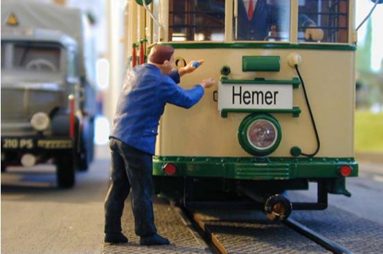 Die Streckenlänge auf der L-förmigen Schauanlage beträgt mehr als 17 m. Der kürzere Anlagenschenkel zeigt die Ausweiche Hemer Amt. Nach der 90° Kurve folgt ein für den Vorführbetrieb notwendiger Abstellbahnhof. Im Anschluss daran befindet sich der Streckenteil Ihmerter Tal. So kann einerseits der Pendelverkehr zum Hemer Amt mit Triebwagen und Beiwagen, sowie andeutungsweise Fahrten mit einzelnen Triebwagen in Richtung Niederhemer und Höcklingsen dargestellt werden. Auf der anderen Seite kann der Güterverkehr im Ihmerter Tal nachempfunden werden; im Abstellbahnhof kann hierzu zwischen zwei Triebfahrzeugen, Ellok und Triebwagen, gewechselt werden.